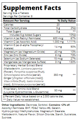 * Tome una ráfaga de vitamina C en combinación con 13 vitaminas, minerales y hierbas que apoyan la salud del sistema inmunológico.